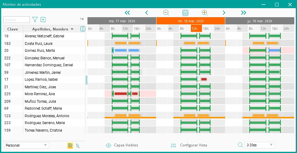 El monitor de actividades permite ver fácil y rápidamente el estado de los empleados (presentes/ausentes).