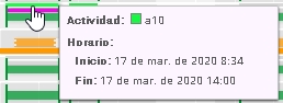Otro ajuste que puede realizar es el de visibilidad. Puede regular el zoom para aumentar o disminuir las franjas de tiempo. El zoom máximo representa las franjas en fracciones de 5 minutos, y el zoom mínimo puede mostrar hasta un mes completo (esta opción depende de la resolución del monitor) |